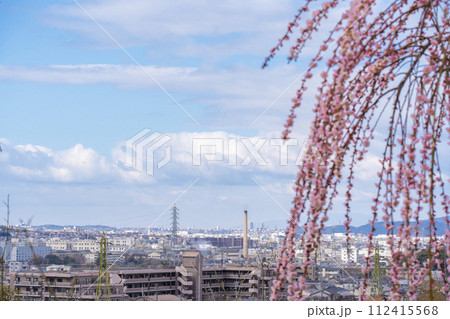 京都宇治 三室戸寺 しだれ梅園から宇治の街を一望する