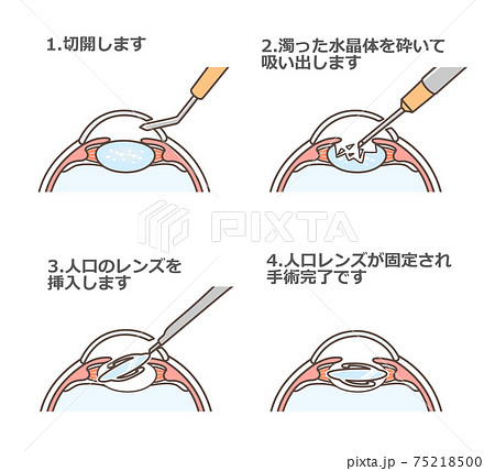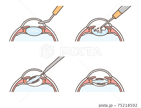 イラスト素材: 白内障手術の流れを図解で説明(主線なし)