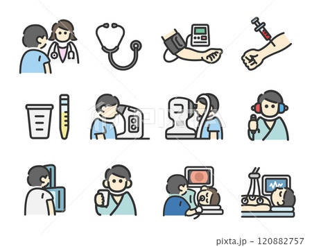 健康診断のメニューのアイコン(線画カラー)のイラストセット