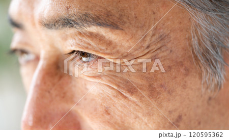 女性 シニア 目元 アップ