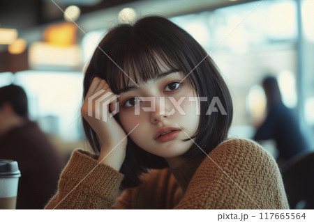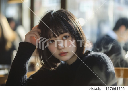 カフェでくつろぐ女性