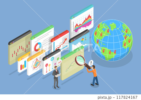 3D Isometric Flat Illustration of Analysis Report or Research Results, Financial Statistics