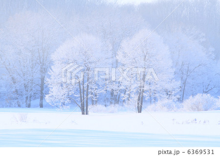 氷点下の朝の白樺の木 樹氷 霧氷 ”北見市”