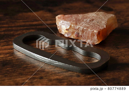 ファイヤースターターで火をつける子供手元 キャンプ着火イメージ
