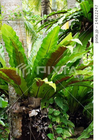 自然 植物 シマオオタニワタリ、ガジュマルに着生。南国のジャングル感満載です