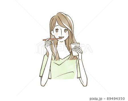 歯ブラシを持つ女性イラスト