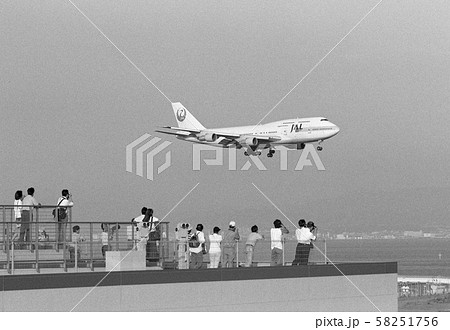夏の大阪空港(伊丹空港) タキシング中の飛行機とギャラリー 大阪府豊中市