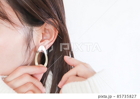 イヤリングを付けるミドル女性