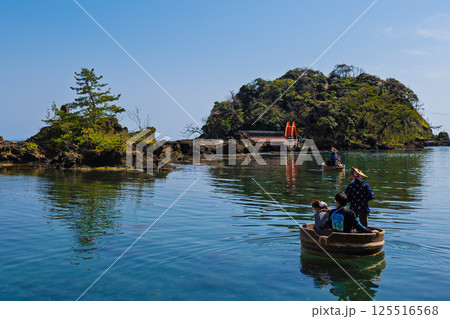 新潟県佐渡市の矢島・経島のたらい船からの眺め(ゴールデンウィーク)