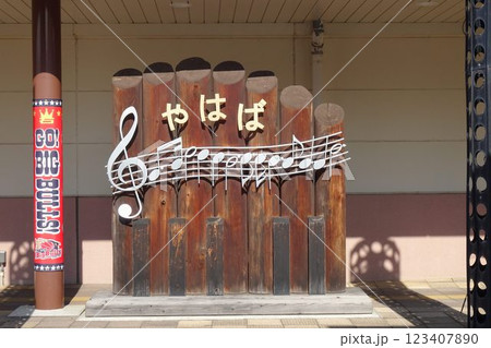 岩手の駅 晴れた日のJR矢幅駅 駅前のオブジェ