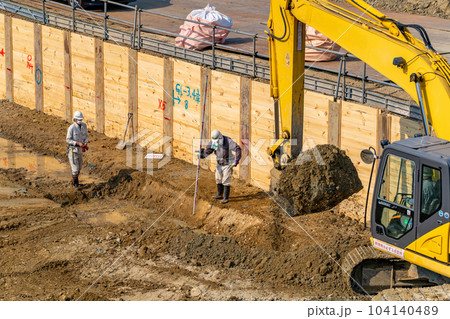 油圧ショベル 高低差 掘削 親杭横矢板工法