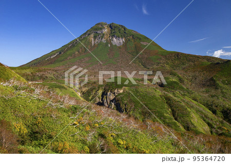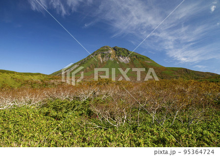 北海道・道東 羅臼湖からの紅葉の知西別岳 秋 9月