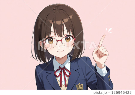 女学生、アニメ風、カラーイラスト
