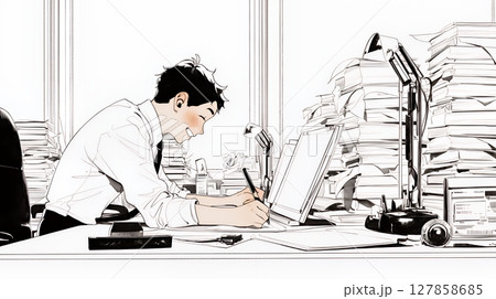 綿密なビジネス戦略を練っている男性(シンプルな色使い)
