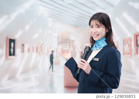 マイクを持ち講演する女性|セミナー、プレゼンテーション、ビジネスシーン