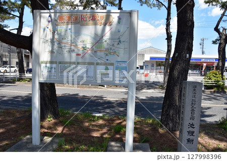 愛知県 知立の松並木と側道と観光案内板と東屋