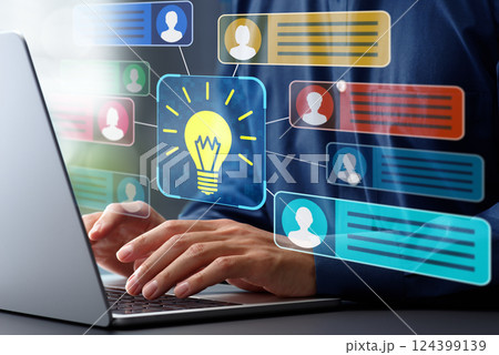 知識と情報の管理。AI駆動による自動化されたナレッジ発見システム。ノートパソコンを使ってドキュメント