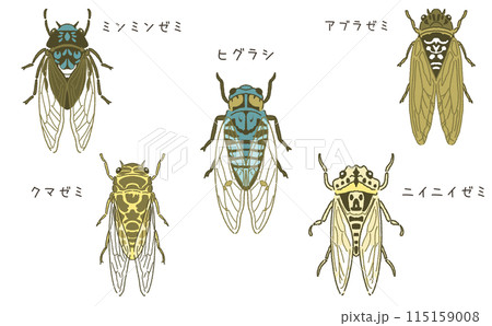 蝉のイラスト素材セット 文字入り 名称入り 昆虫のイラスト