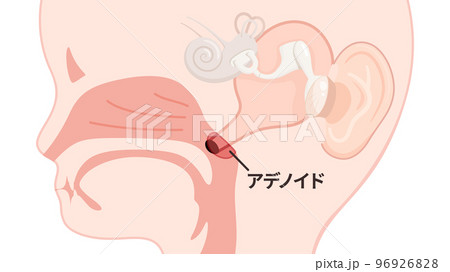 子どもの耳管と肥大したアデノイドのイラスト_矢状断