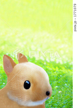 CG うさぎ (実写素材からのレタッチ加工)ぬいぐるみ 草原タテ位置