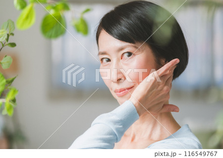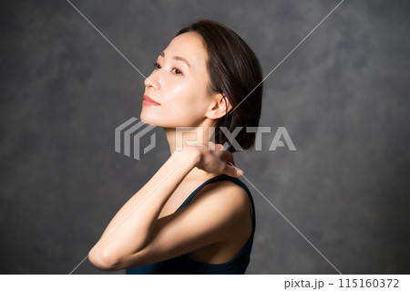髪をかきあげる美しい女性の横顔の水彩画