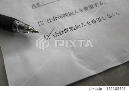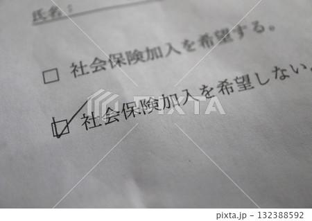 社会保険加入を希望しないにチェック。入社手続きの書類。