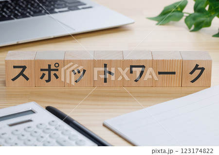 テーブルの上にスポットワークと書かれたブロック
