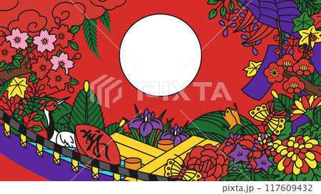 花札の各月の花と役が入った蛇年のための背景イラスト_16:9