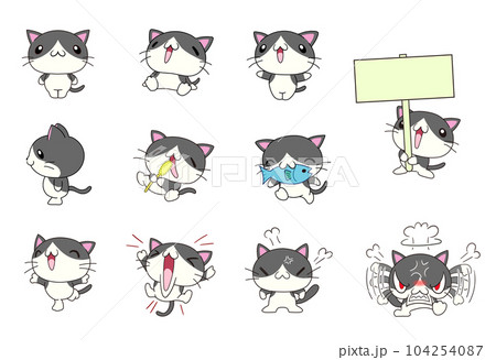 かわいい猫の色々なポーズセット(ハチワレ)