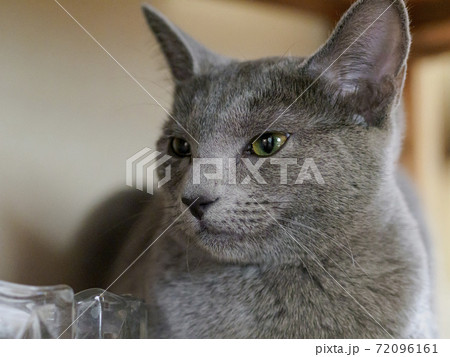 何かを見つめるロシアンブルーの子猫 左方向向き
