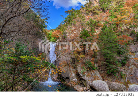 紅葉彩る昇仙峡の仙娥滝と断崖の絶景風景 山梨県