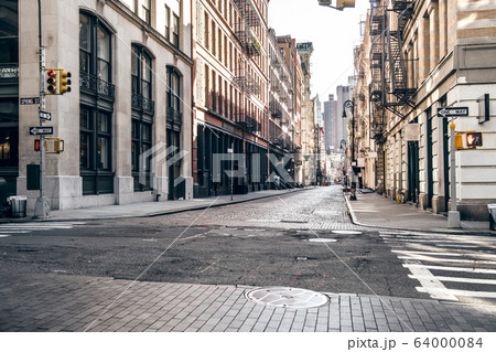 Empty street at sunset time in SoHo district in Manhattan, New York