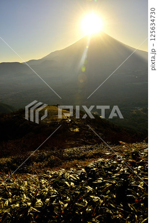 天子山地の竜ヶ岳より 富士山の頭上に昇る太陽