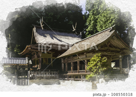 水彩画風 吉川八幡宮 本殿 岡山県吉備中央町