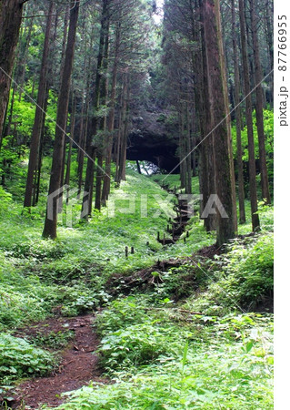 上色見熊野座神社の奥にある穿戸岩 熊本県阿蘇郡高森町上色見