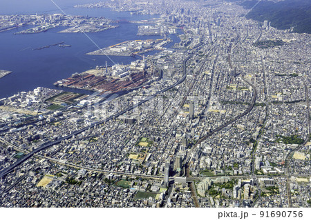 神戸市東灘区上空から摩耶埠頭方向を空撮
