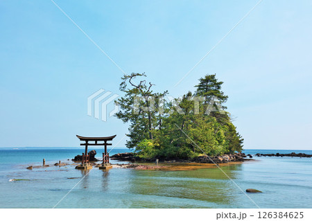 石川県 能登半島 青空の恋路海岸からの弁天島