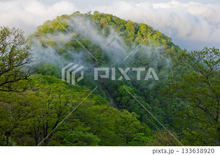 丹沢・檜洞丸稜線から見る雲湧く新緑の石棚山