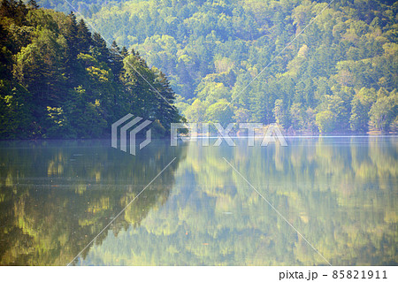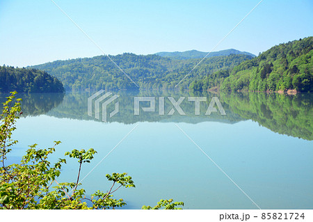 鏡面の水面が美しき桂沢湖