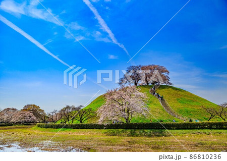 埼玉県 埼玉古墳群 丸墓山古墳と桜