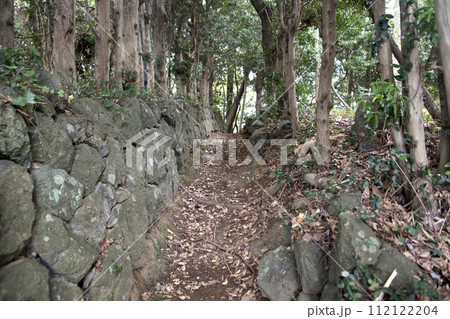 石脇城跡にある一の曲輪裏手の土塁跡(静岡県焼津市)