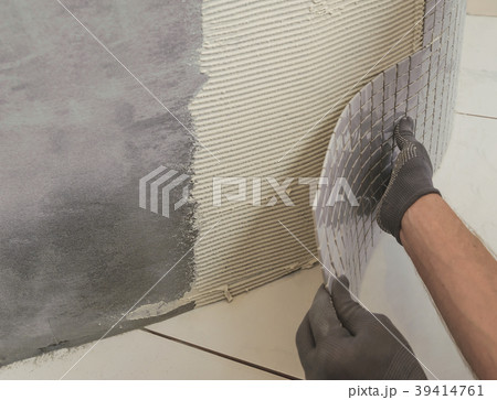 Worker is propping tile.