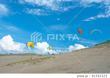 パラグライダーを楽しむ若者たち(鳥取砂丘)