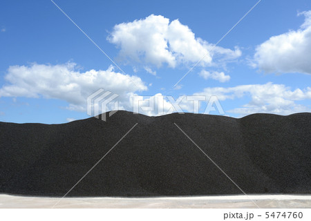 建築資材置き場の砂利の山と青空
