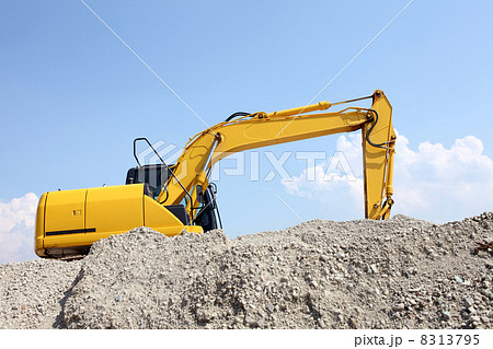 砂利山の上にあるショベルカー