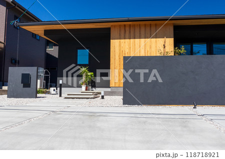 新築の門壁のあるモダン住宅外観