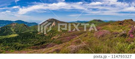 登山道から見た初夏の阿蘇山一帯 熊本県阿蘇市