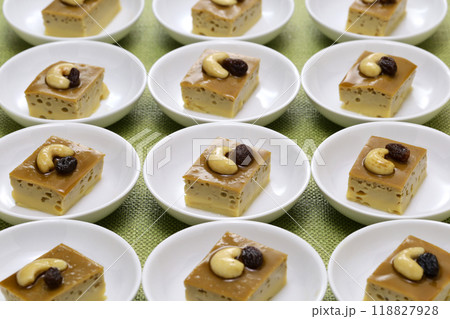 pudding with coconut topping, thai dessert