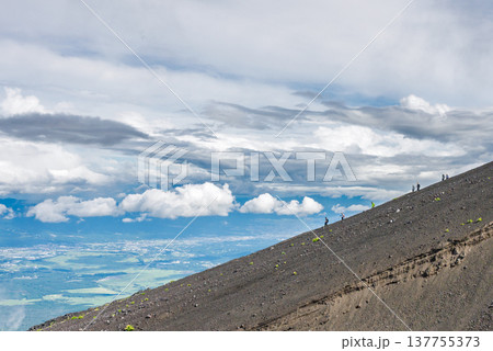 富士登山 須走ルートを下山する登山者達