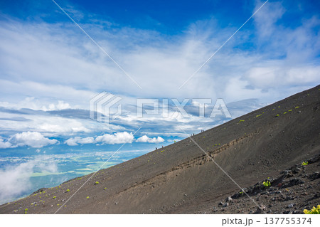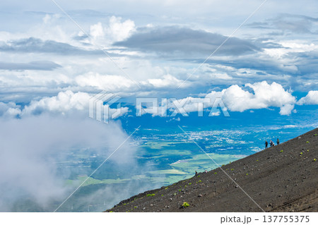 富士山御殿場登山道から見る大砂走りと雲湧く山腹